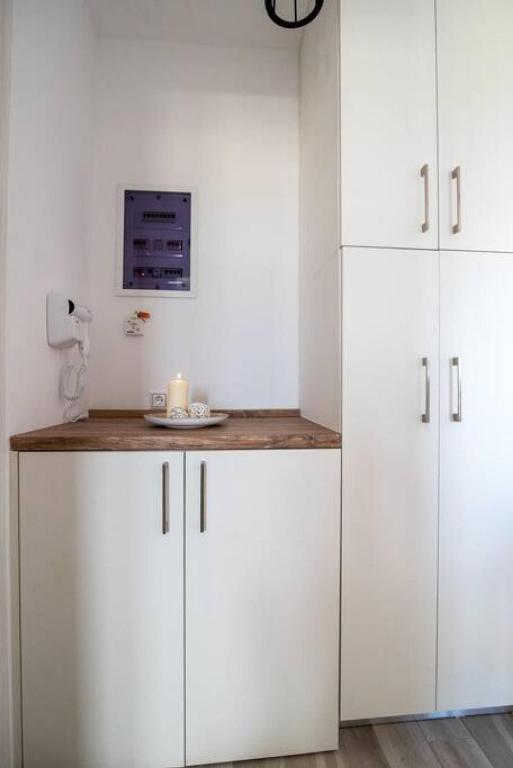 The apartment consists of one double bedroom and 2 sofa beds in the living room.